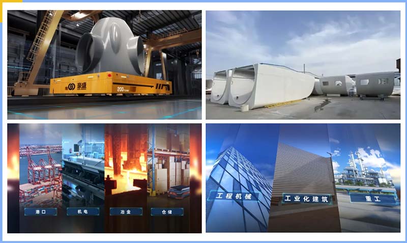 除了风能发电领域,豪盛重载AGV还广泛适用于储能行业,如储能柜转运;电厂变压器转运;以及预制构件、工程机械、造船、矿业、金属冶炼、码头等各种重工业领域。
