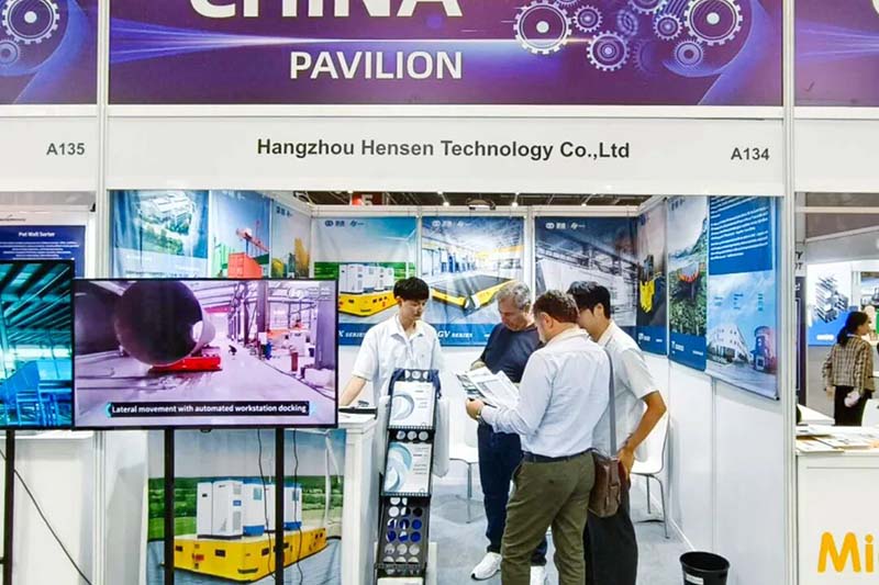 展出的场内物流搬运车辆尤其是智能AGV备受客户青睐,踏踏实实迈好中国科技企业“走出去”的一步。