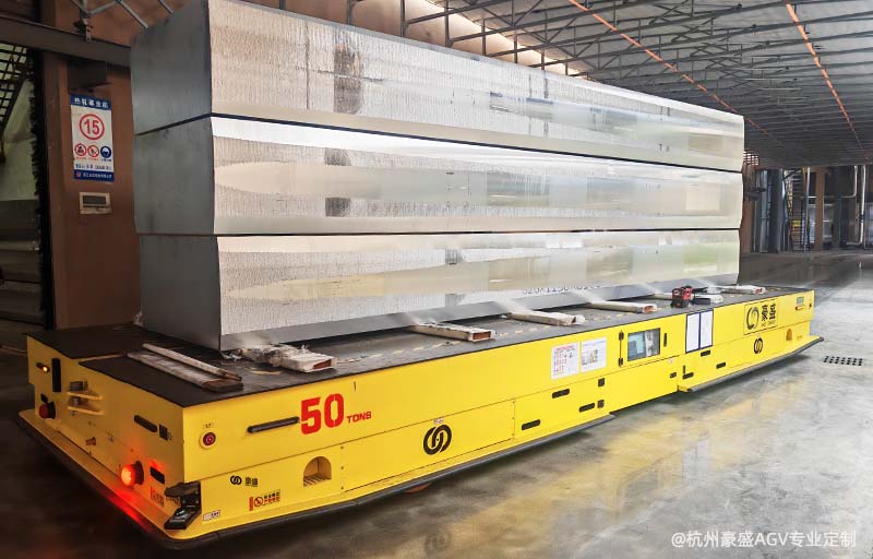 杭州豪盛作为国内领先的重载搬运设备定制专家,凭借20多年在重载自动化领域的深厚技术积淀,为该项目量身定制了一套50吨级激光导航重载AGV解决方案。该方案直面铝材行业超重载、高精度的转运痛点,展现了豪盛卓越的工程落地能力。