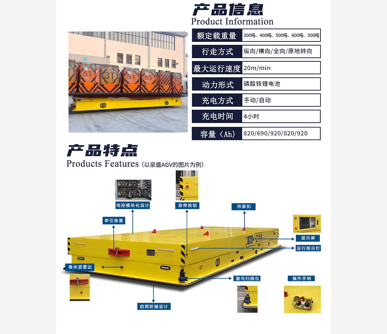 豪盛重载AGV可以实现横移、纵移、斜行和原地转向,以极高的定位精度在复杂、狭窄的工况中运行。